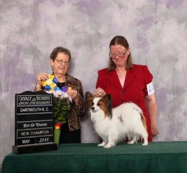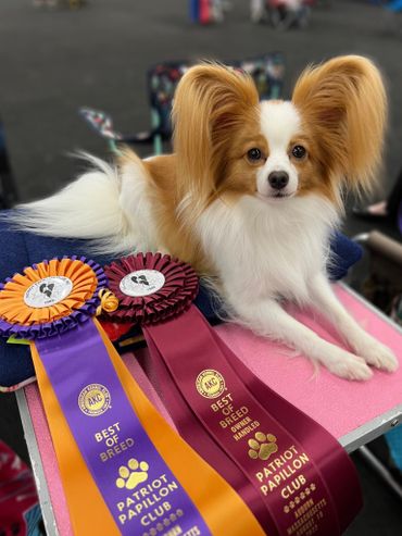 Our papillons are shown in agility, rally, obedience, conformation, barn hunt, dock diving, and therapy dogs.